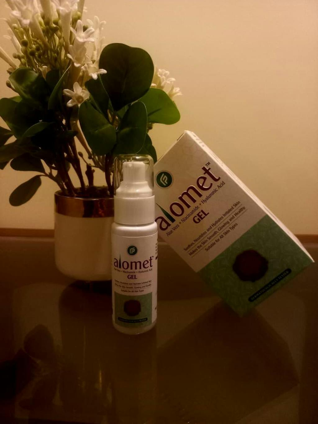 - Combined, these ingredients provide a range of benefits for the skin. Alomet Gel can help moisturize and lock in moisture, soothe irritated skin, reduce redness and inflammation, plump up the skin, and improve the appearance of fine lines and wrinkles. It can also help repair damaged skin and protect the skin from UV radiation.