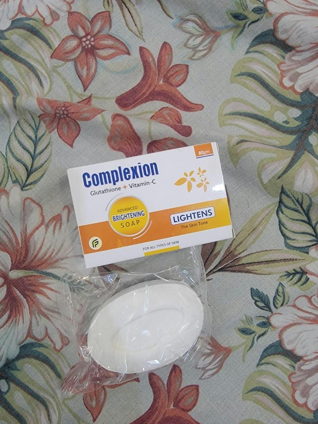 Complexion is Advanced Whitening Soap Lightens the Skin Tone contains Glutathione, Vitamin C, Niacinamide, Licorice Extract & Aloe Vera.