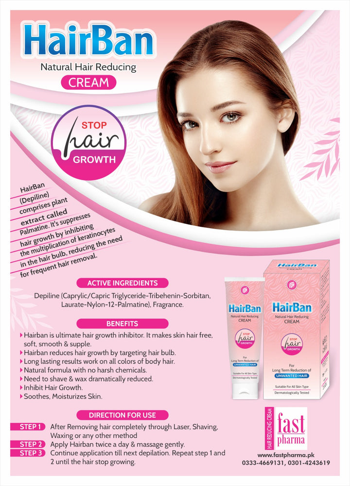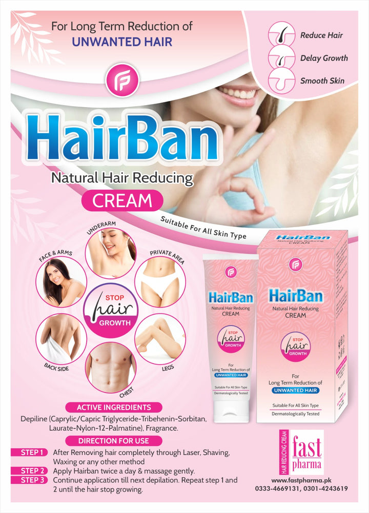 Hairban is ultimate hair growth inhibitor. It makes skin hair free, soft, smooth & supple. Hairban reduces hair growth by targeting hair bulb.